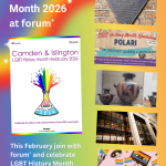 forum+ is an independent charity working to promote equality for LGBT+ people in Camden & Islington. forum+ hosts social support groups and events which celebrate local LGBT+ life and we provide support services to LGBT+ victims of hate crime. Our services are available to ages 18 and over.